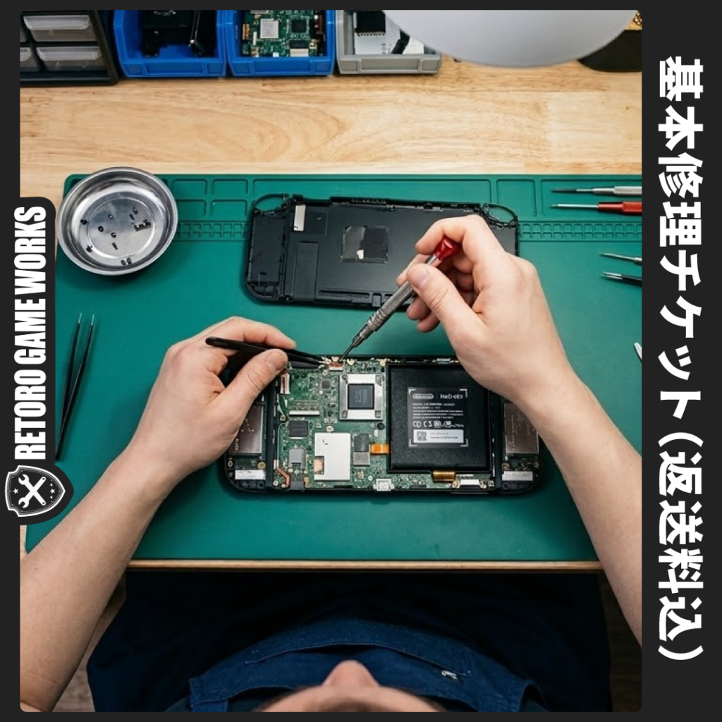当店では、レトロなゲーム機にメンテナンスとカスタマイズを施して販売しております。出荷前に入念な動作確認を行っておりますが、レトロゲーム機の特性上、予期せぬ不具合が発生する可能性を完全になくすことはできません。そのため、当店では「初期不良保証」および「製品保証」を設けております。万が一、期間内に不具合が生じた場合は無償にて対応させていただきますが、保証期間外の故障等につきましては有償修理になりますことをあらかじめご了承ください。一台一台、心を込めて蘇らせましたので、レトロゲーム機の性質をご理解いただき、末永く大切にしてくださる方とのご縁を心よりお待ちしております。